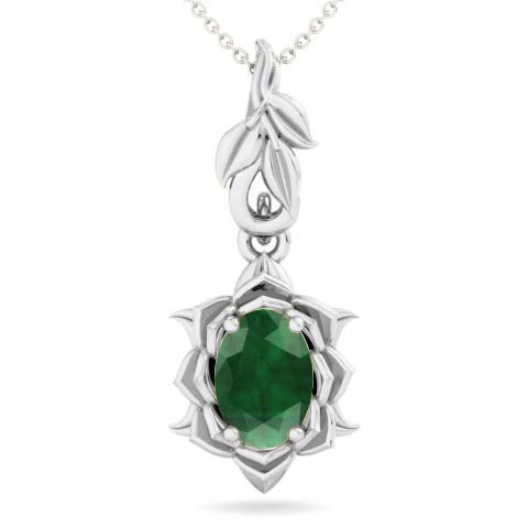 3/4 Carat Oval Shape Emerald Necklaces With Ornate Vine Design In 14 Karat White Gold, 18 Inch Chain
