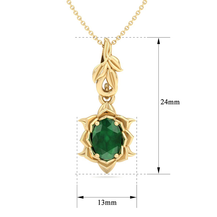 Retrograde Birthstones™ 3/4 Carat Oval Shape Emerald Necklaces With Ornate Vine Design In 14 Karat Yellow Gold, 18 Inch Chain