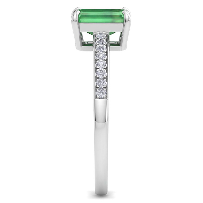 1 1/4 Carat Emerald Cut Emerald and Diamond Ring In 14K White Gold