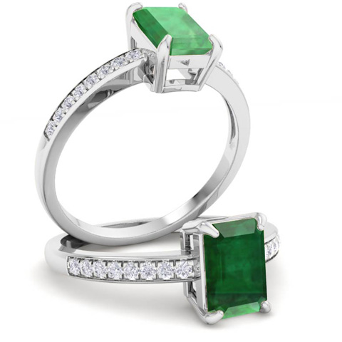 1 1/4 Carat Emerald Cut Emerald and Diamond Ring In 14K White Gold