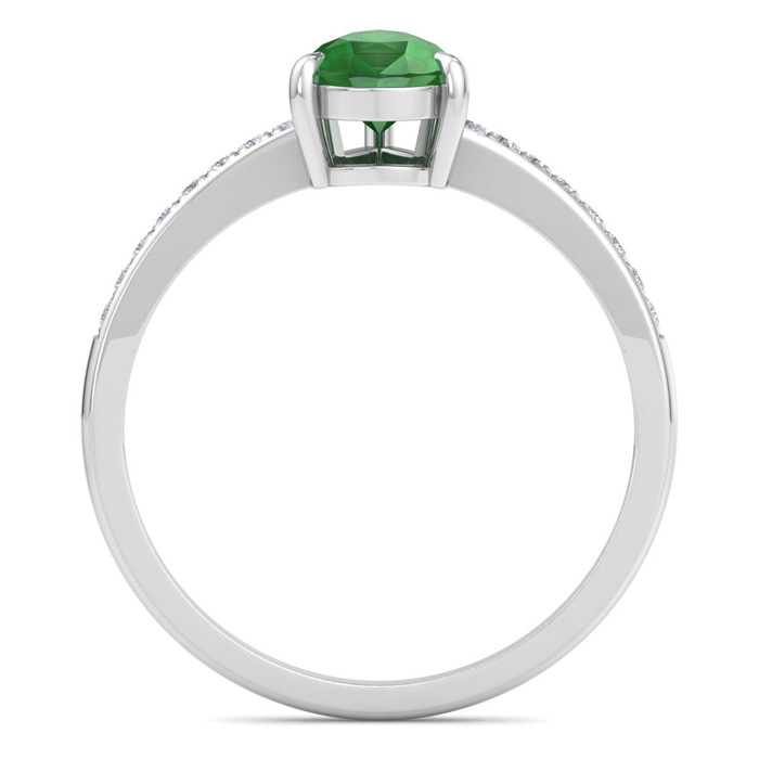 Retrograde Birthstones™ 1 1/4 Carat Pear Shape Emerald and Diamond Ring In 14K White Gold