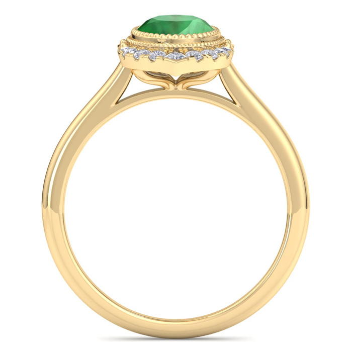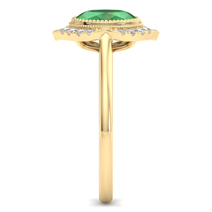 Retrograde Birthstones™ 1 1/5 Carat Oval Shape Emerald and Diamond Ring In 14K Yellow Gold