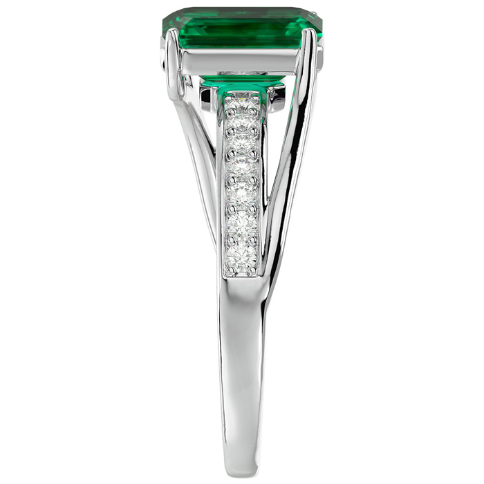 1 3/4 Carat Emerald Shape Created Emerald and Diamond Ring In Sterling Silver