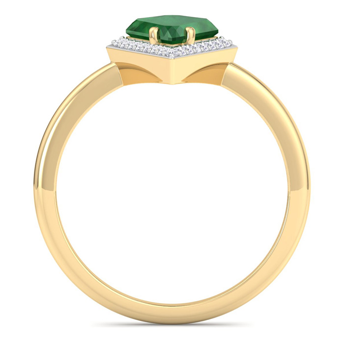 Retrograde Birthstones™ 1 3/4 Carat Kite Shape Emerald and Diamond Ring In 14K Yellow Gold