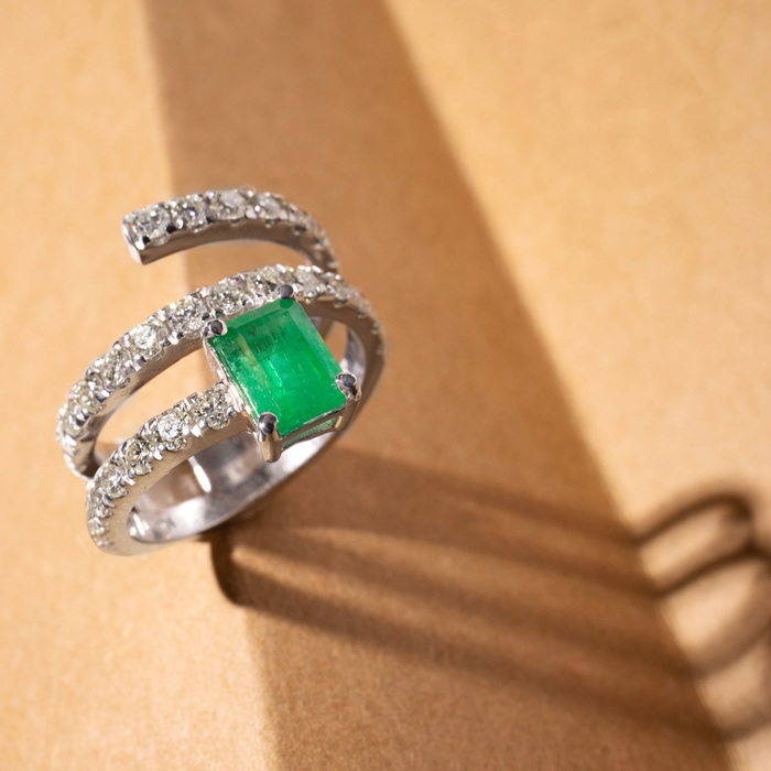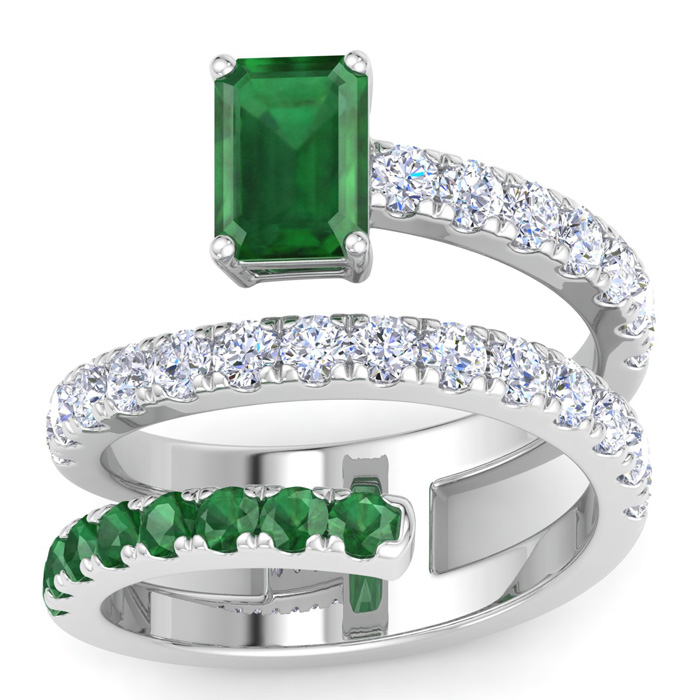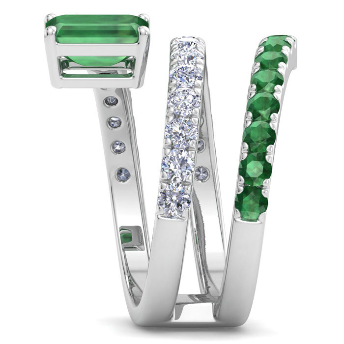 1 3/4 Carat Lab Grown Diamond and Emerald Wrap Ring In 14 Karat White Gold