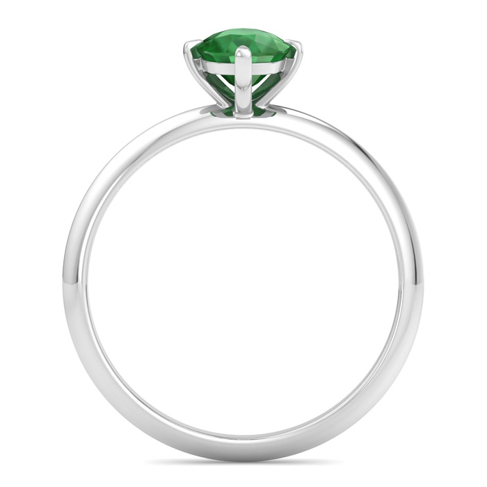 Retrograde Birthstones™ 1 Carat Antique Cushion Shape Emerald Ring In 14K White Gold
