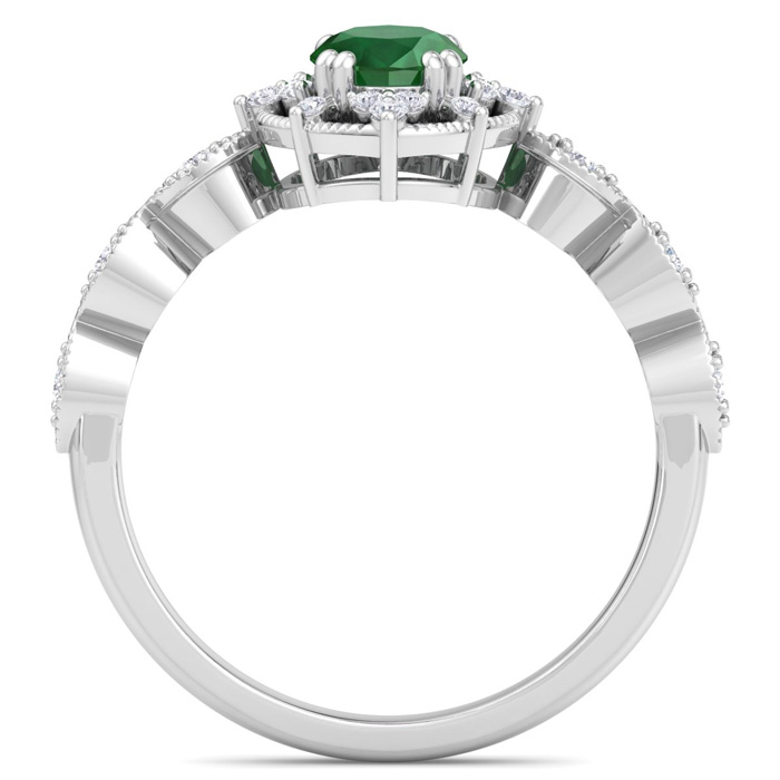 Retrograde Birthstones™ 1 Carat Emerald and Halo Diamond Ring In 14K White Gold