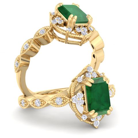 1 Carat Emerald and Halo Diamond Ring In 14K Yellow Gold