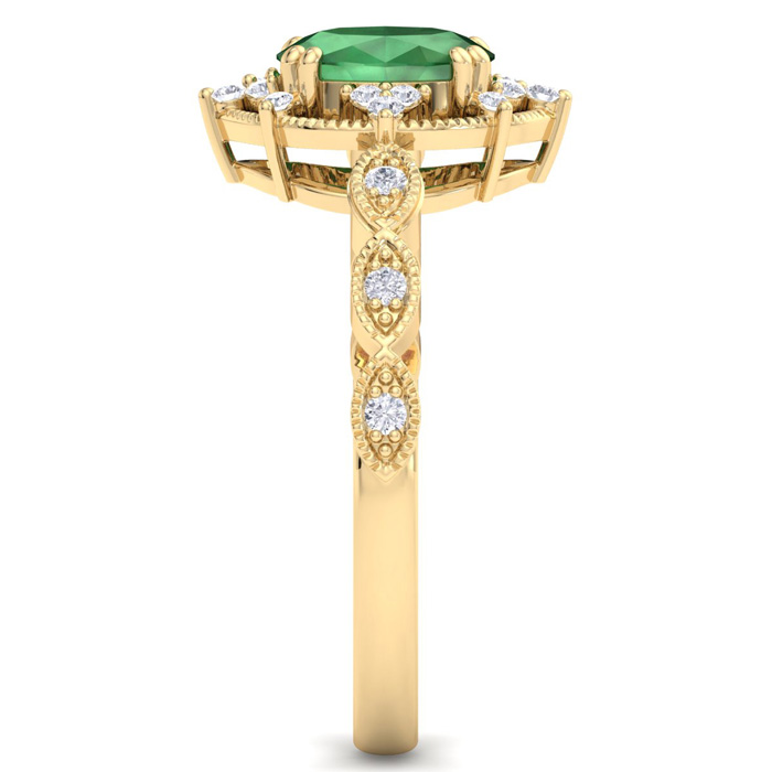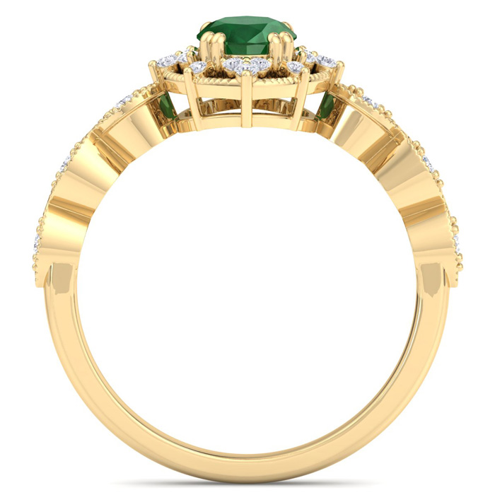 Retrograde Birthstones™ 1 Carat Emerald and Halo Diamond Ring In 14K Yellow Gold