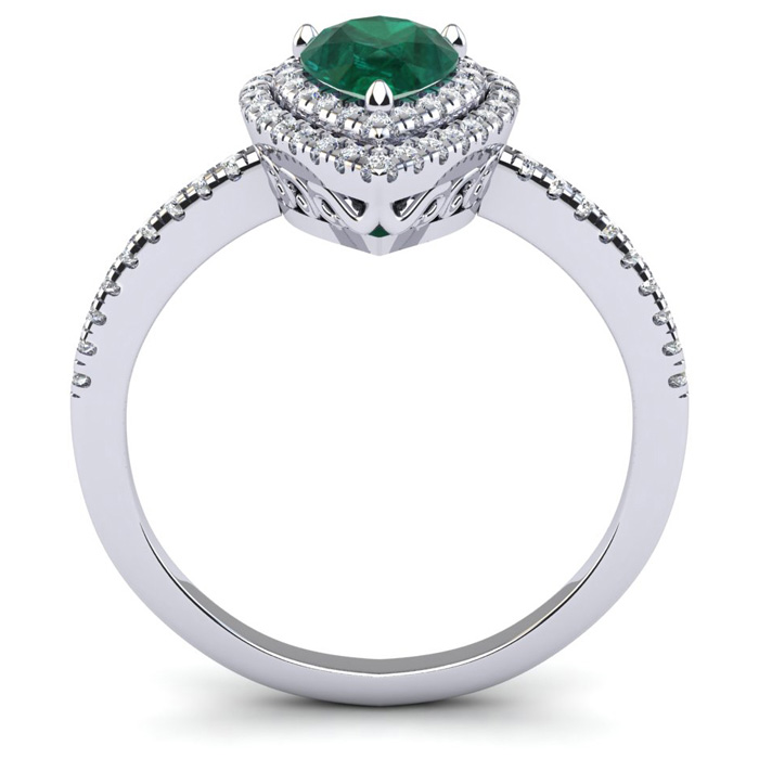 1 Carat Pear Shape Created Emerald and Double Halo Diamond Ring In Sterling Silver