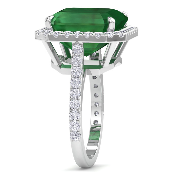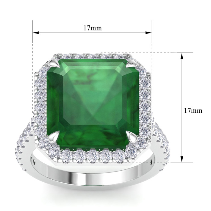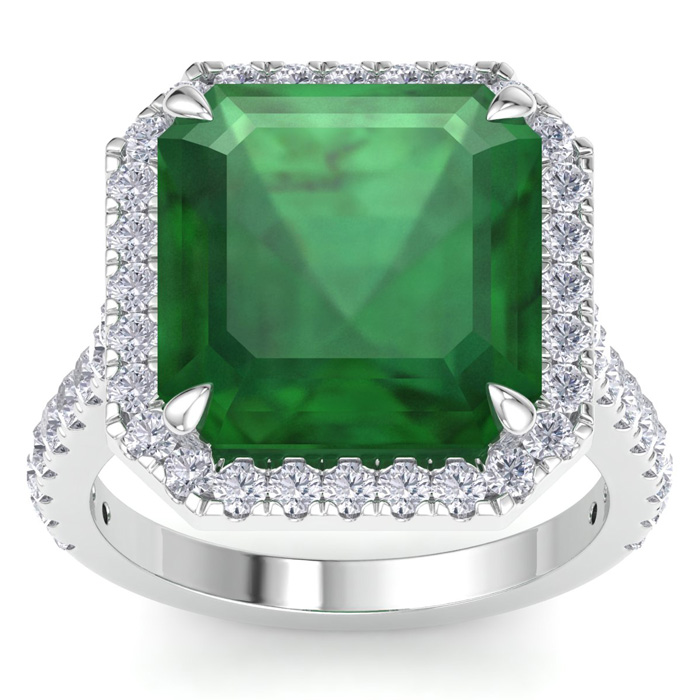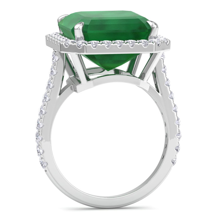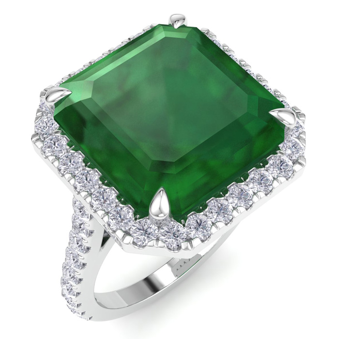 11.69 Carat Corner Cut Square Shape Zambian Emerald and Halo Diamond Ring In 14K White Gold