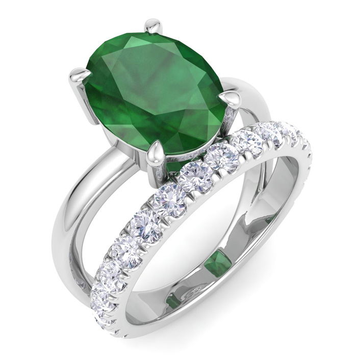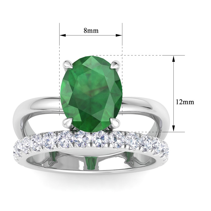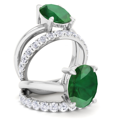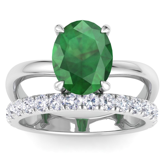 2 3/4 Carat Oval Shape Emerald and Halo Diamond Ring Plus Band In 14 Karat White Gold