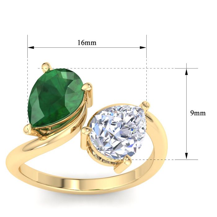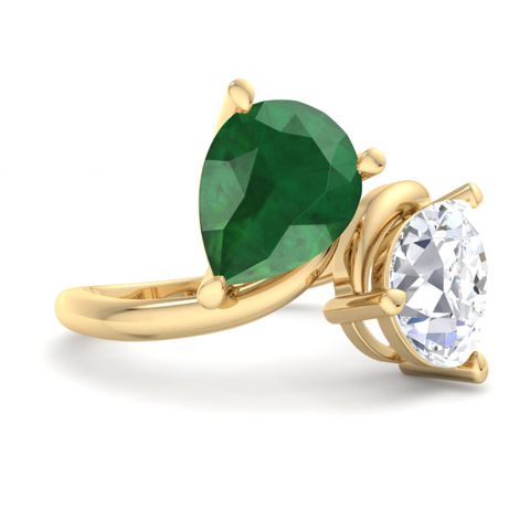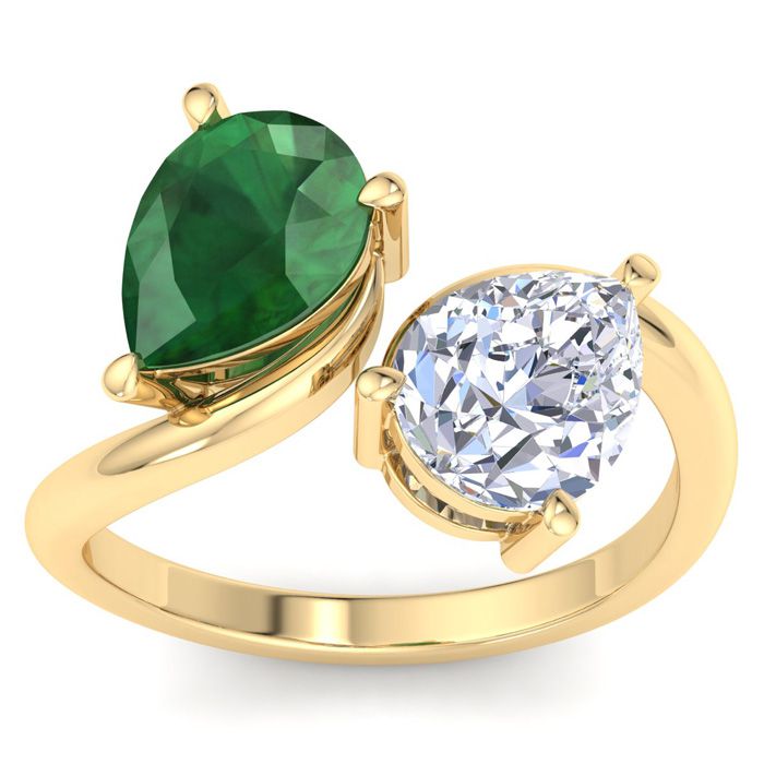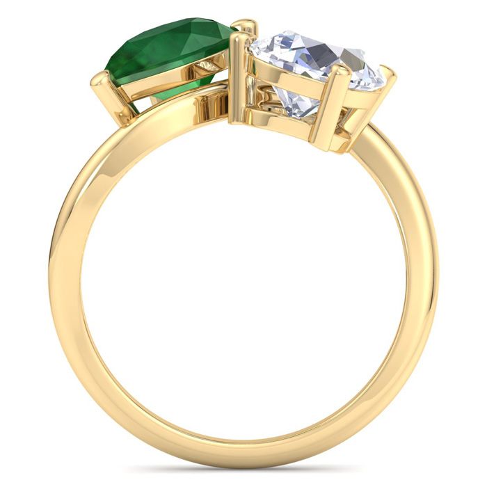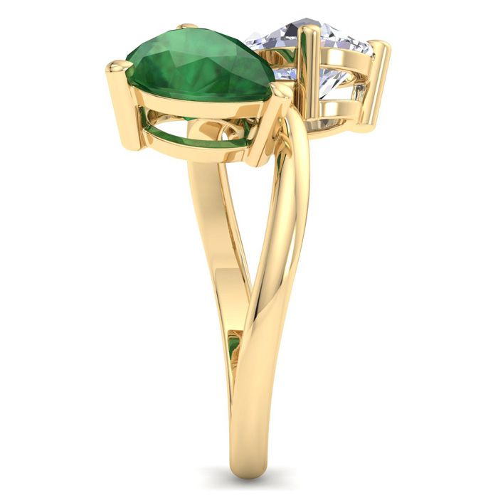 3 1/2 Carat Emerald and Lab Grown Diamond Two Stone Engagement Ring In 14 Karat Yellow Gold, Pear-Pear