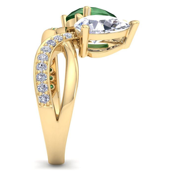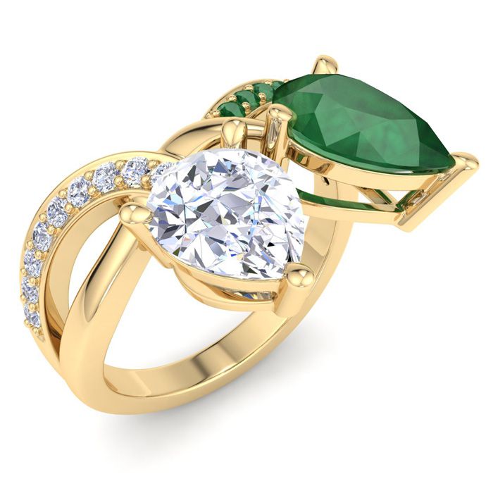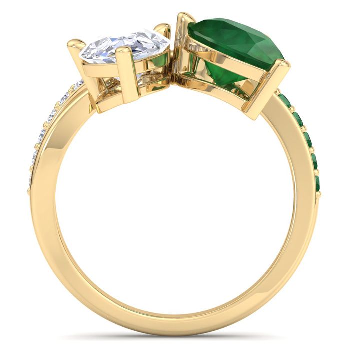3 1/2 Carat Emerald and Lab Grown Diamond Two Stone Engagement Ring In 14 Karat Yellow Gold, Pear