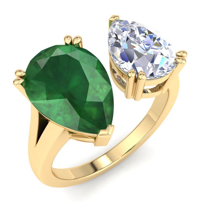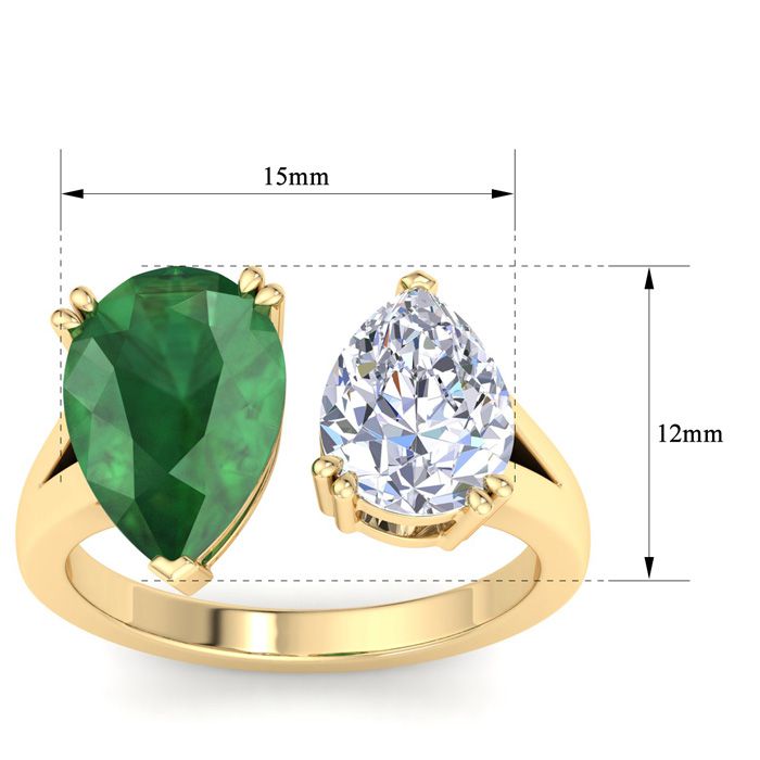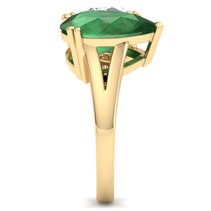 4 3/4 Carat Emerald and Lab Grown Diamond Two Stone Engagement Ring In 14 Karat Yellow Gold, Pear