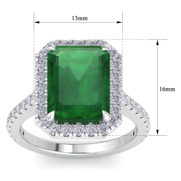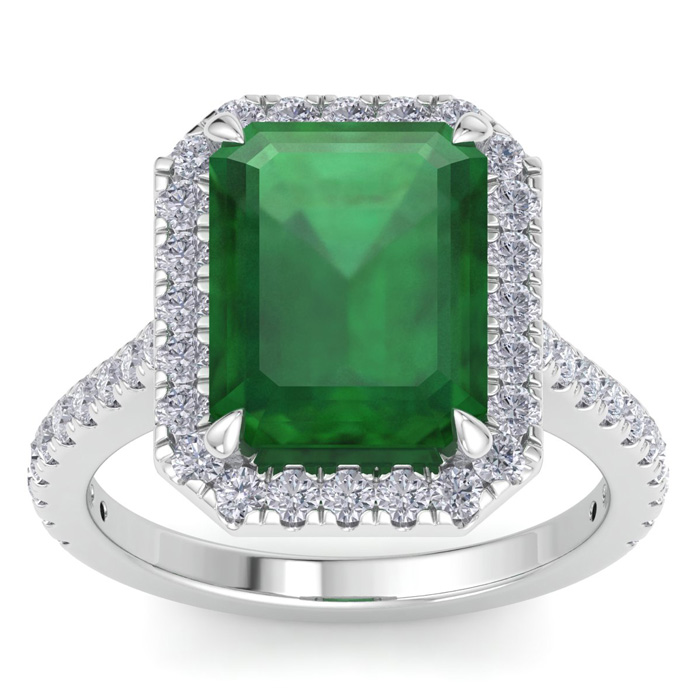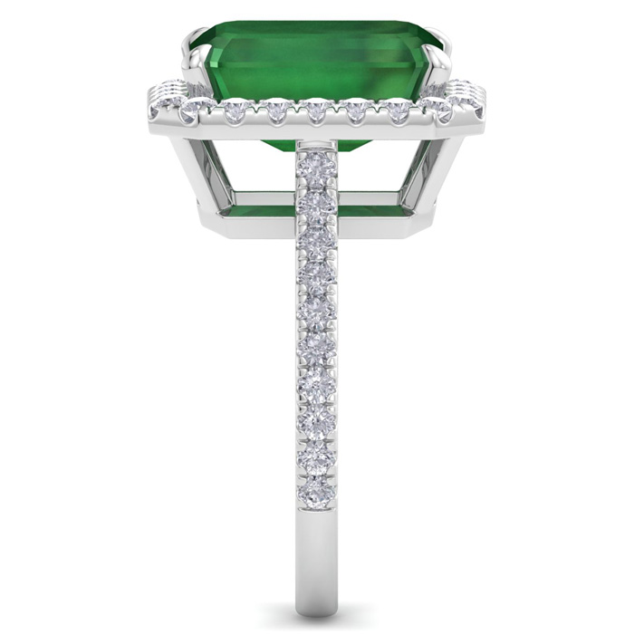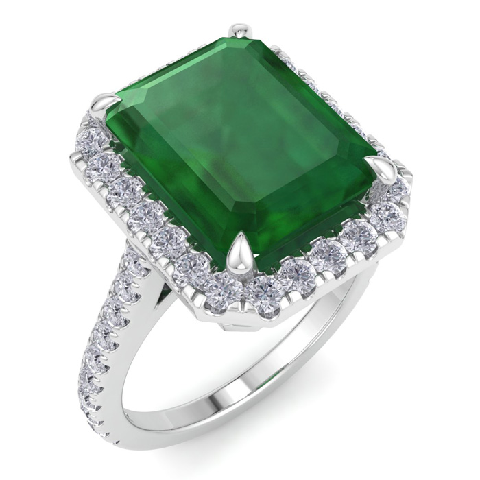 6.35 Carat Octagon Shape Zambian Emerald and Halo Diamond Ring In 14K White Gold