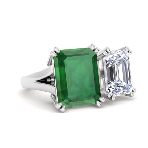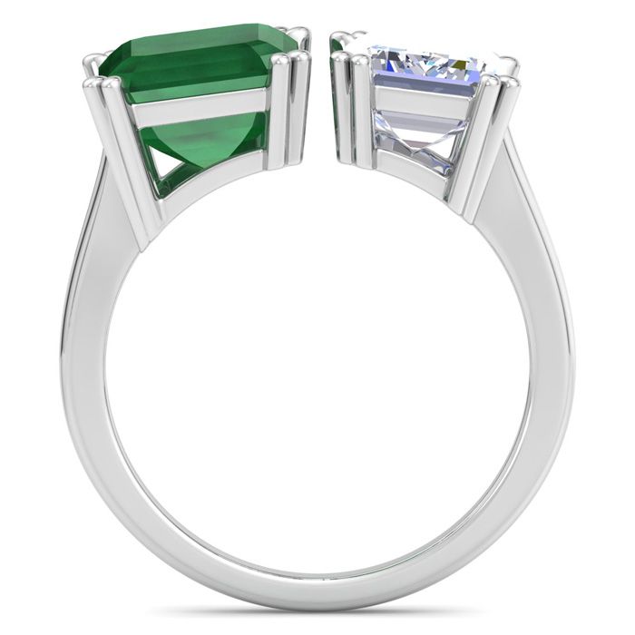 6 Carat Emerald and Lab Grown Diamond Two Stone Engagement Ring In 14 Karat White Gold, Emerald
