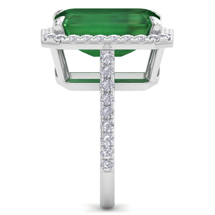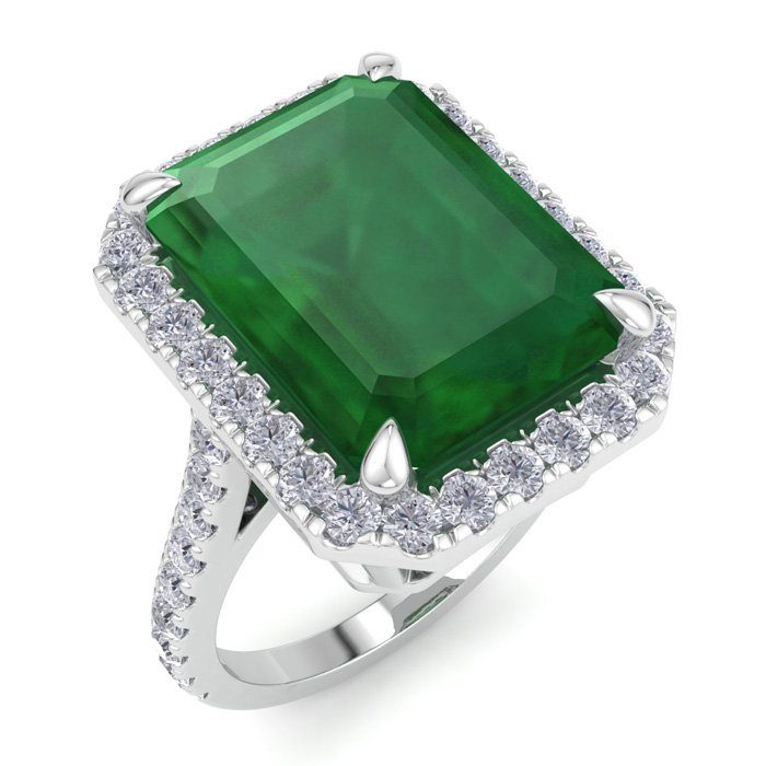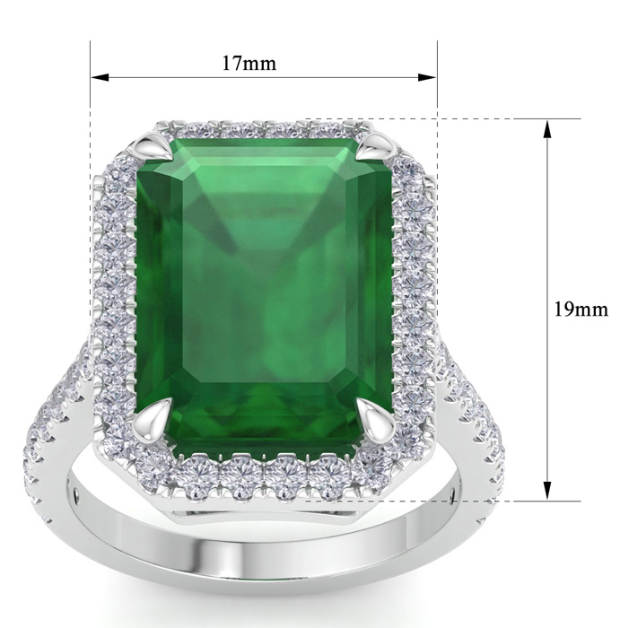 9.95 Carat Octagon Shape Zambian Emerald and Halo Diamond Ring In 14K White Gold