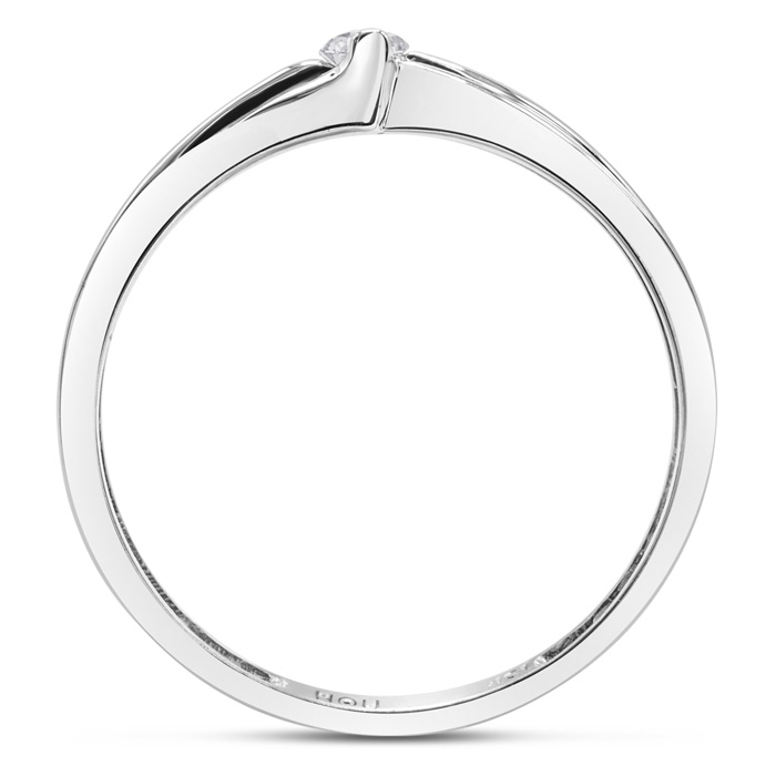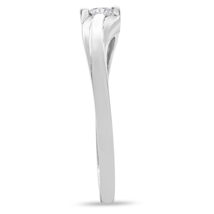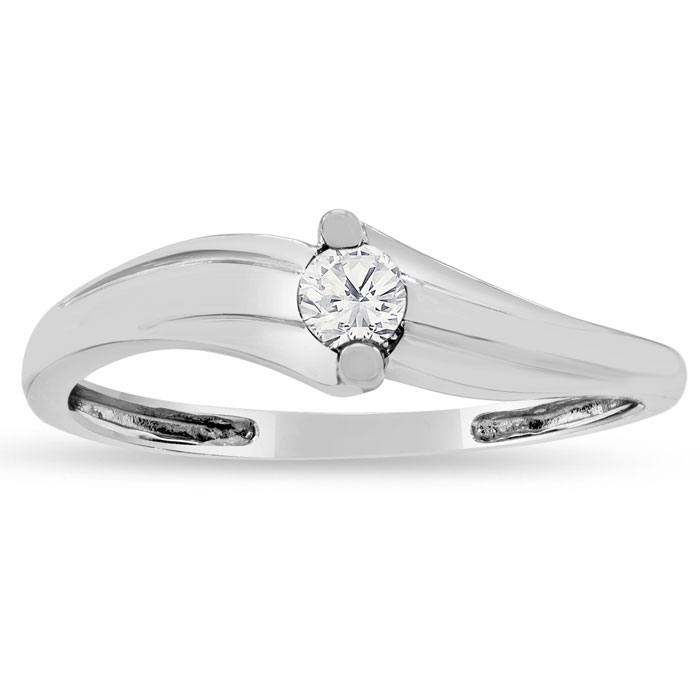 This Estate Jewelry promise ring features 1 diamond weighing 0.07 carats in J-K color, I1-I2 clarity. This ring is in 10 karat white gold and finger size 7.