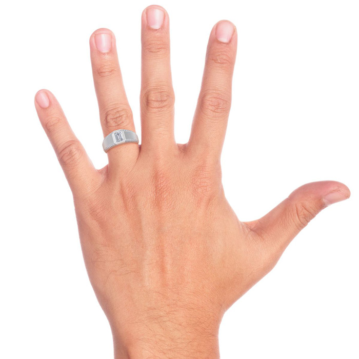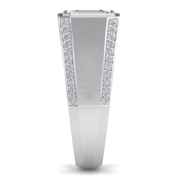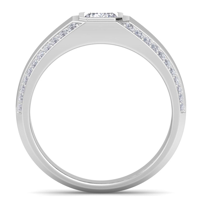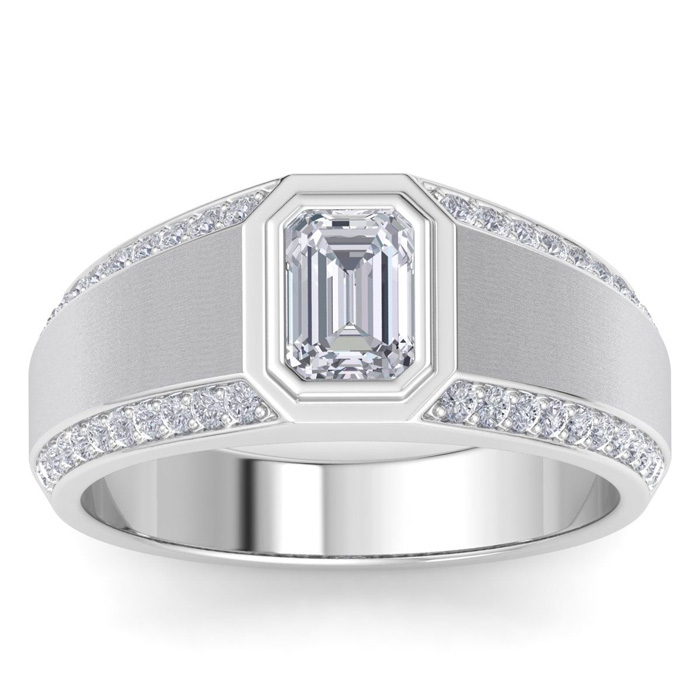 Estate Jewelry 1-1/2 Carat Emerald Cut Lab Grown Diamond Mens Ring In 14K White Gold, Size 7.5