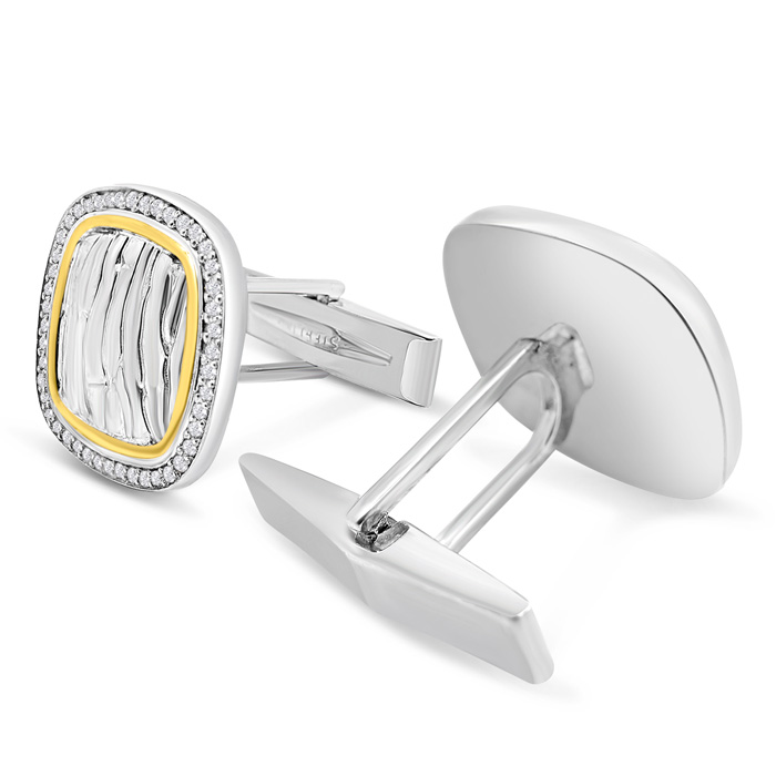 Estate Jewelry 1/2 Carat Diamond Cufflinks For Men In Sterling Silver and 14 Karat Yellow Gold