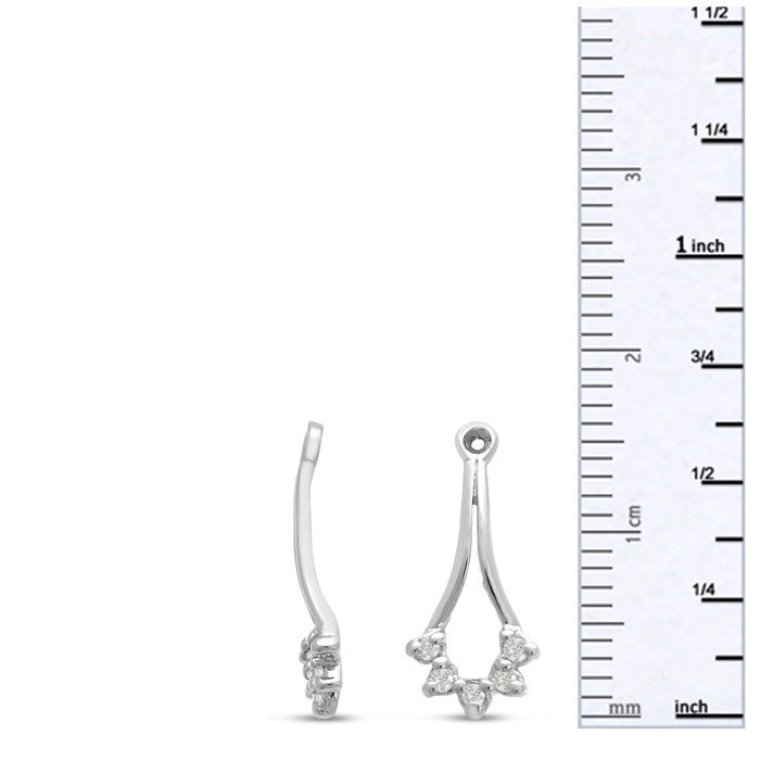 These Estate Jewelry 14 karat white gold cluster dangle diamond earring jackets enhance any size stud earrings. These dangle jackets contain 0.15ct of diamonds in G-H color, I1-I2 clarity. They are about 3/4 inch long. The jackets contain 10 diamonds total.