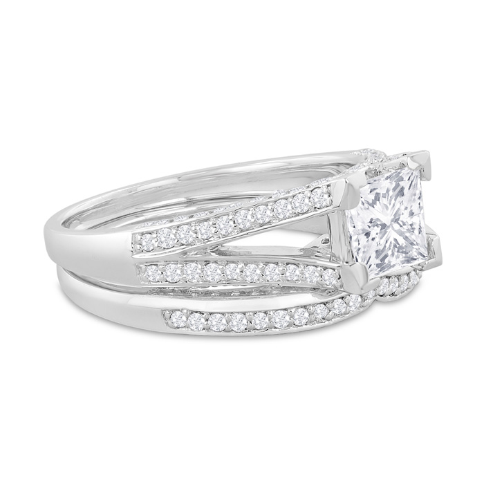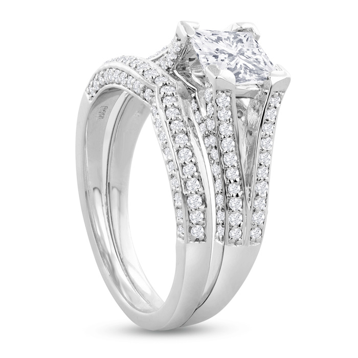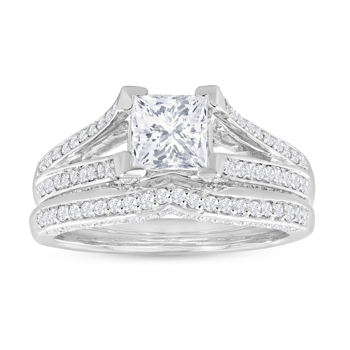 Estate Jewelry 1 3/4 Carat Created Diamond Bridal Set In Sterling Silver, Size 7