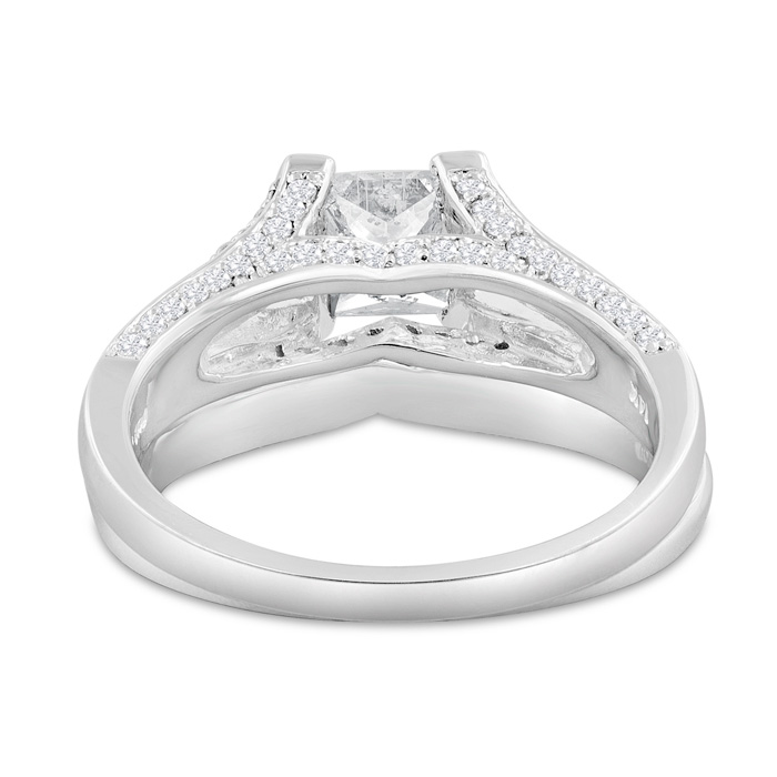 This cubic zirconia ring features the equivalent of a 1 carar center diamond.. This ring is crafted in sterling silver.