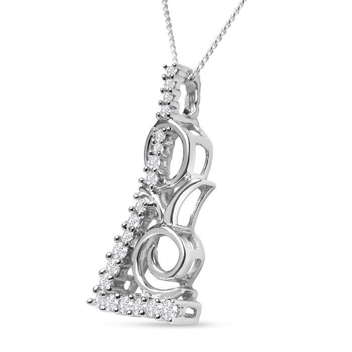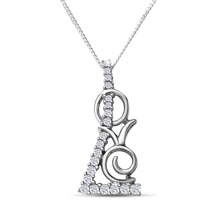 This Estate Jewelry fancy LOVE necklace is handcrafted in sterling silver and looks like 1/3 carats of diamonds. This necklace comes with an 18 inch sterling silver chain with a spring ring clasp.