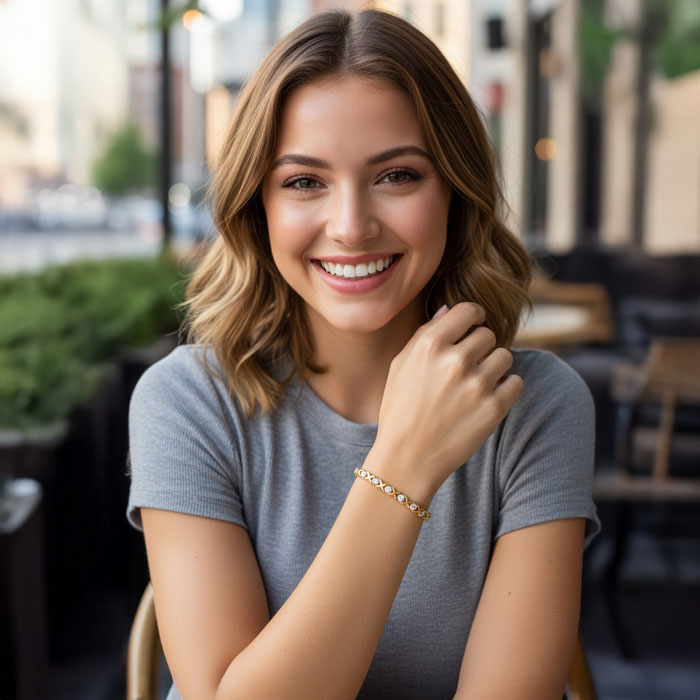 Estate Jewelry 1/5 Carat Natural Diamond Hugs & Kisses Tennis Bracelet In 10 Karat Yellow Gold, 7 Inches