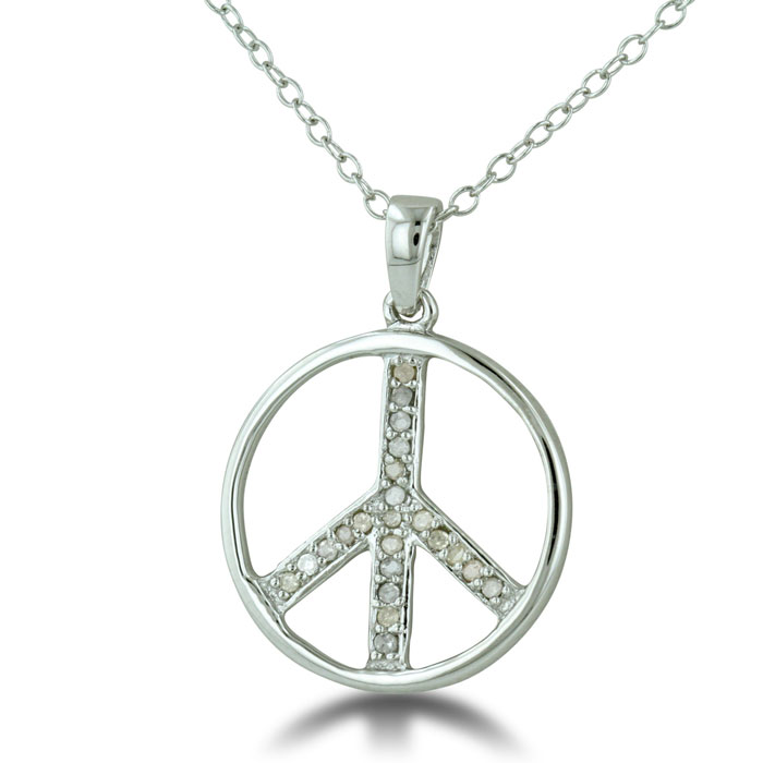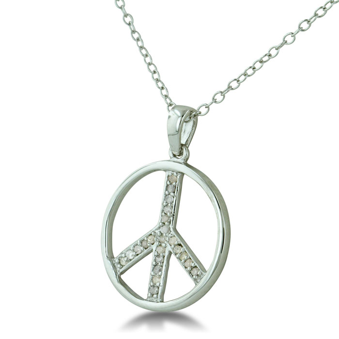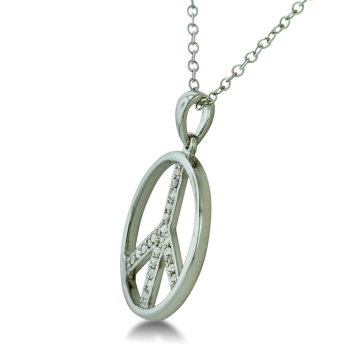 Estate Jewelry 1/8 Carat Diamond Peace Sign Necklace In 14 Karat White Gold