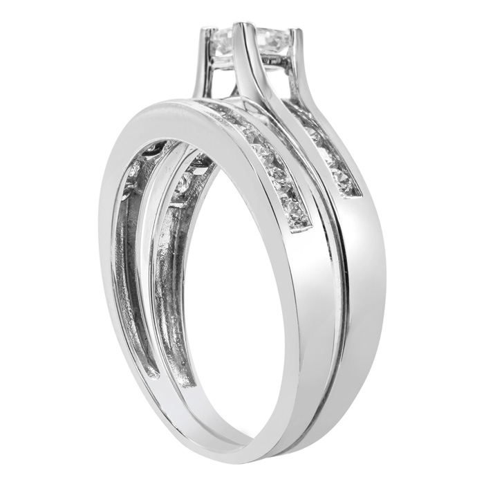 Get a fantastic deal on this Estate Jewelry 14 karat white gold 1 carat princess shape diamond bridal set, that contains a 1/2 carat princess shape center diamond and 1/2 carats of accent round diamonds for a total of 1 carat. By purchasing 2nd hand jewelry from SuperJeweler, you get the fine jewelry you want at a really incredible price.