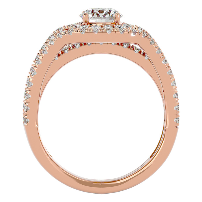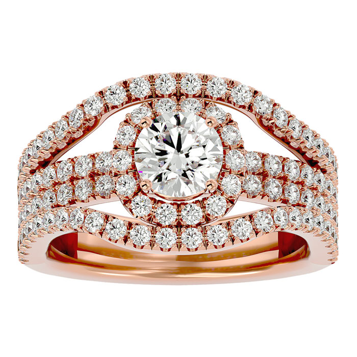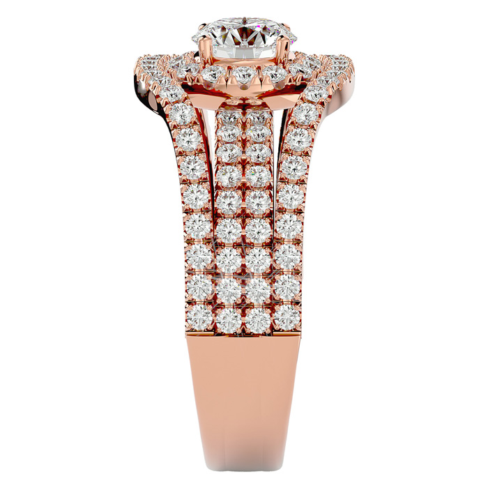 Estate Jewelry 2 Carat Natural Halo Diamond Engagement Ring In 14 Karat Rose Gold, Size 8