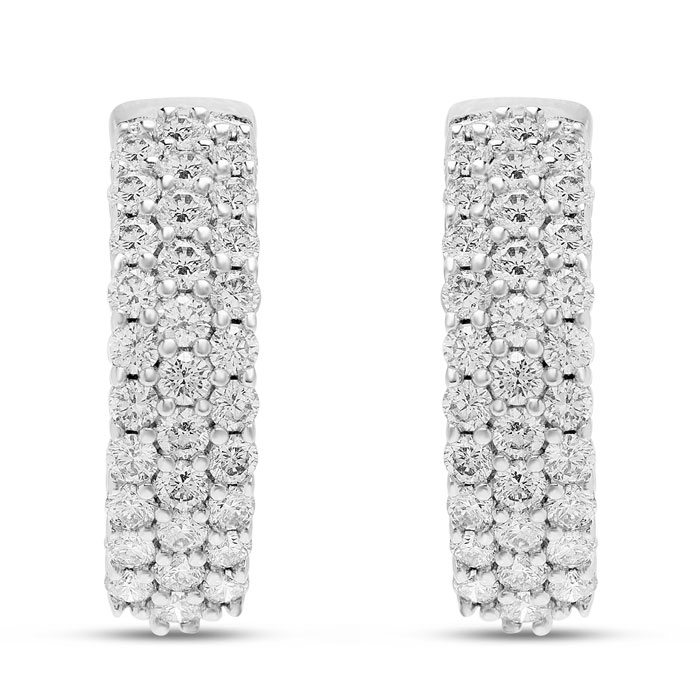 Estate Jewelry 2 Carat Triple Row Diamond Hoop Earrings In 14K White Gold, 1/2 Inch