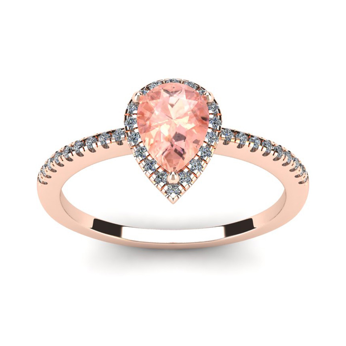 Estate Jewelry 3/4 Carat Pear Shape Morganite and Halo Diamond Ring In 14 Karat Rose Gold, Size 7