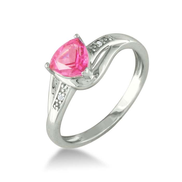 Estate Jewelry 3/4ct Trillion Created Pink Sapphire and Diamond Ring In Sterling Silver, Size 4