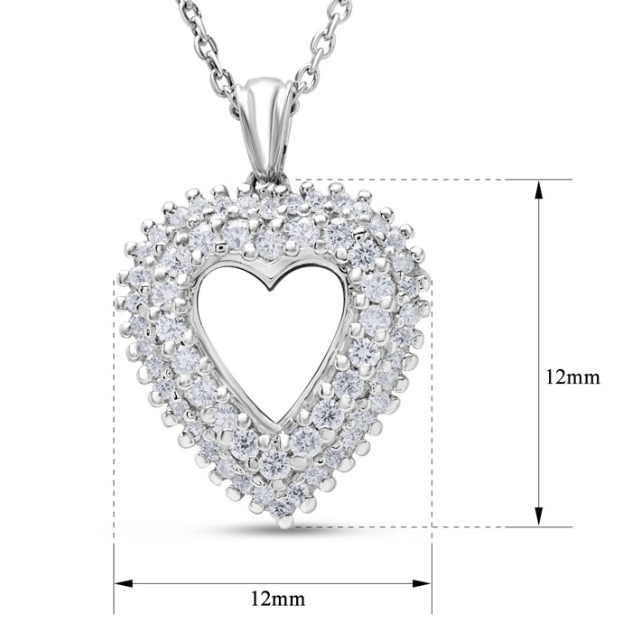 Estate Jewelry 3/8 Carat Real Diamond Heart Necklace In Sterling Silver, 18 Inches