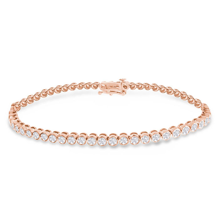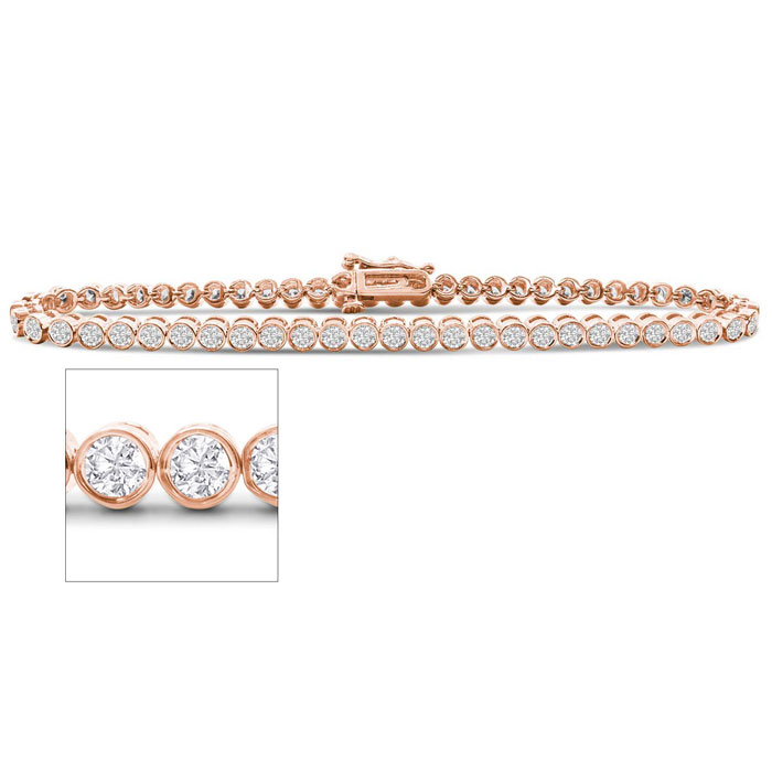 Estate Jewelry 3 Carat Bezel Lab Grown Diamond Bracelet In 14 Karat Rose Gold, 7 Inches