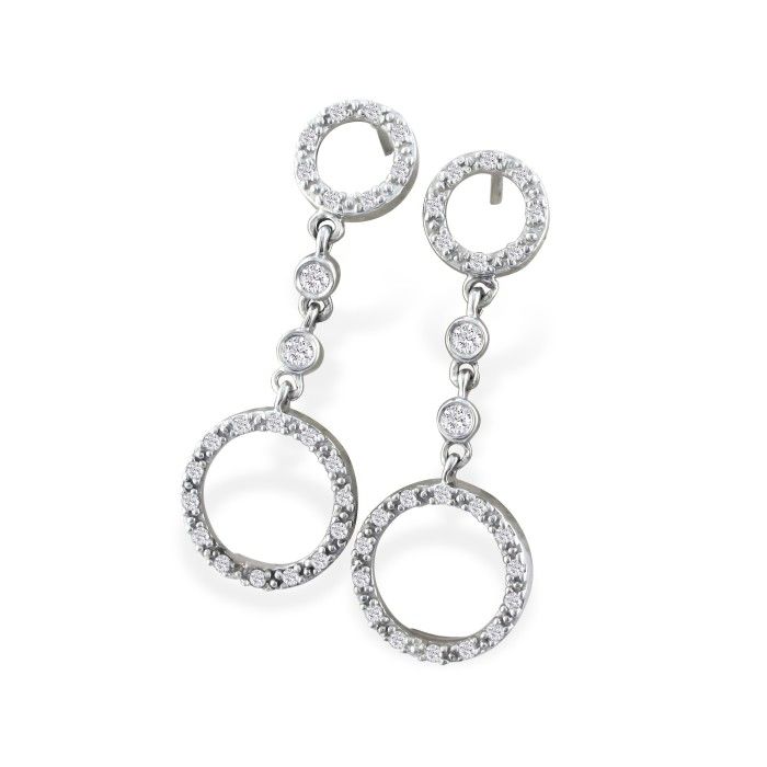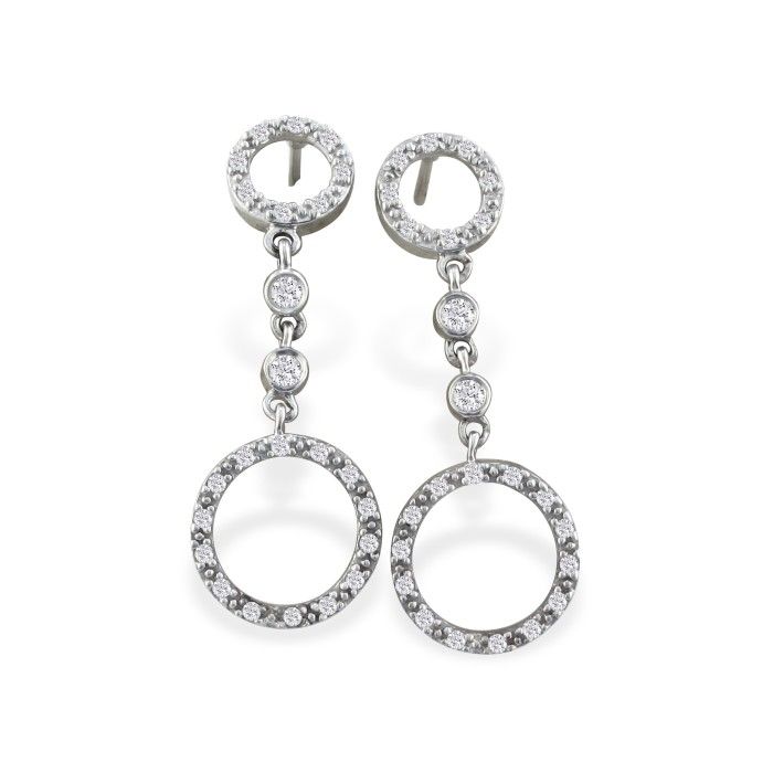 Estate Jewelry Dual Circle 1/4CT Dangle Style Earrings in Sterling Silver And Cubic Zirconia
