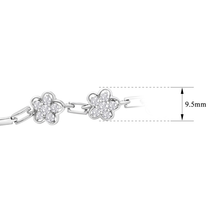 This Estate Jewelry bracelet is lovely. It has three 9.5mm flower clusters each with six round cubic zirconia gemstones. The bracelet is crafted from sterling silver and has a lobster clasp with an adjustable extension for 6.25 to 7.5 inch lengths. The approximate weight of the bracelet is 6.7 grams.