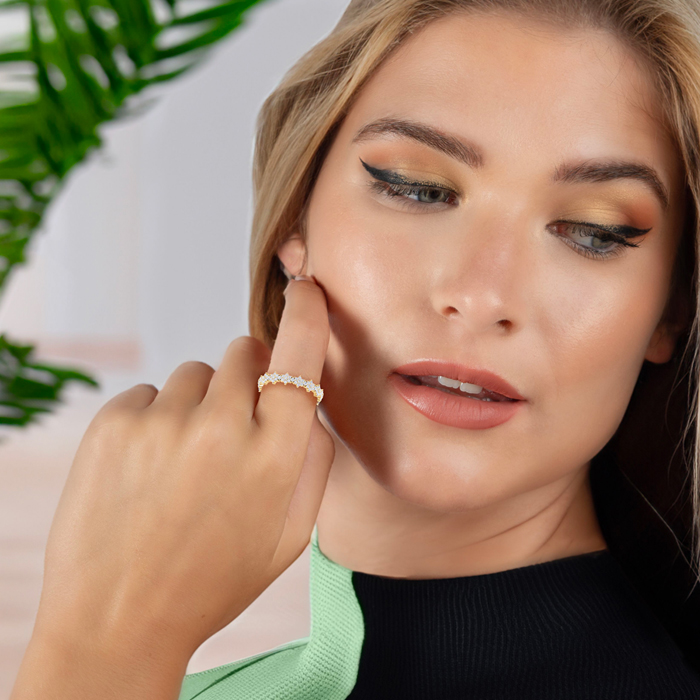Eternity Ring Size 7 1 Carat Flower Shape Lab Grown Diamond Eternity Ring In 14K Yellow Gold