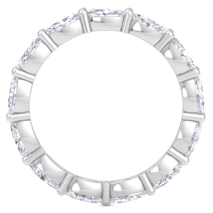 This lab grown diamond eternity ring features 12 oval shape lab grown diamonds at approximately 2 1/2 carat total weight. Diamond color is G-H color, VS clarity. Ring is 5x3mm wide and is in 14 karat white gold.