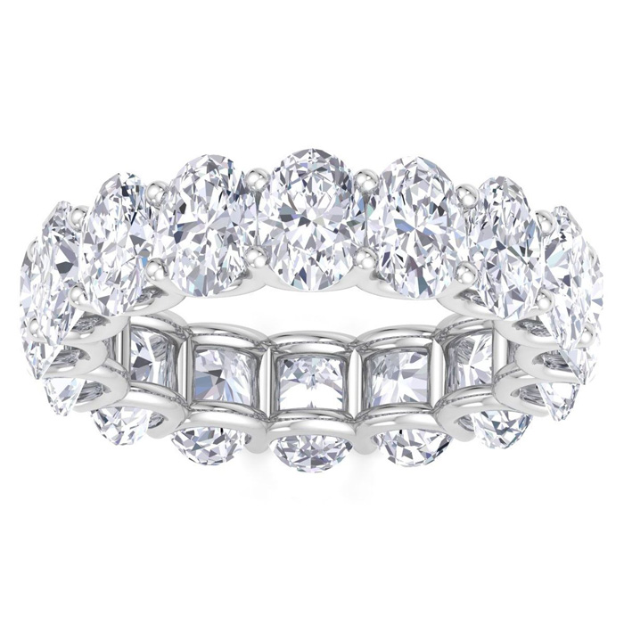 This lab grown diamond eternity ring features 16 oval shape lab grown diamonds at approximately 8 carat total weight. Diamond color is G-H color, VS clarity. Ring is 6x4mm wide and is in 14 karat white gold.