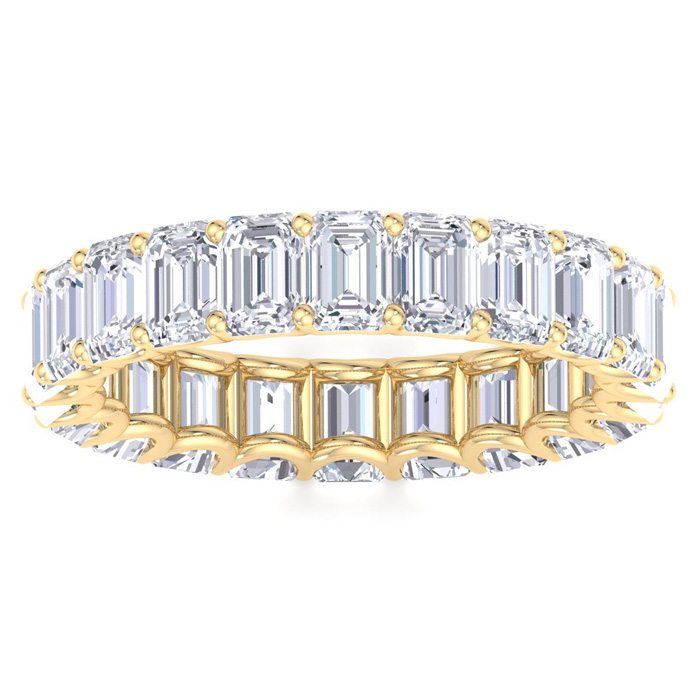 5 1/4 Carat Emerald Cut Lab Grown Diamond Eternity Ring In 14 Karat Yellow Gold, Ring Size 6
