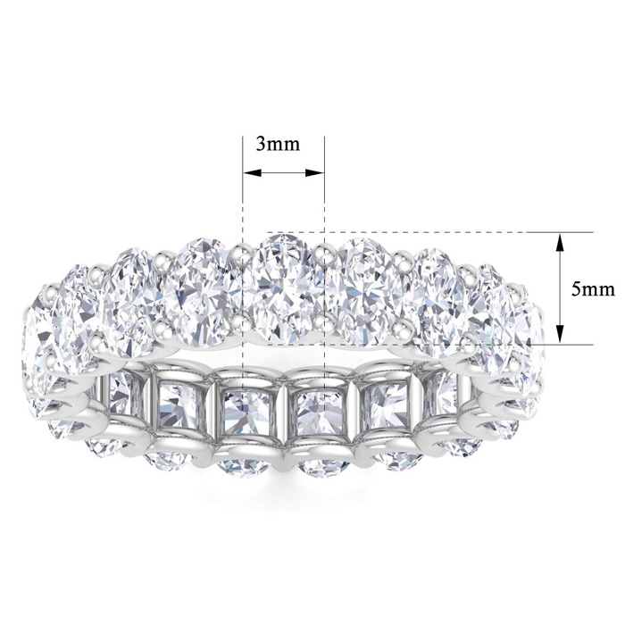 This lab grown diamond eternity ring features 21 oval shape lab grown diamonds at approximately 5 1/4 carat total weight. Diamond color is G-H color, VS clarity. Ring is 5x3mm wide and is in 14 karat white gold.