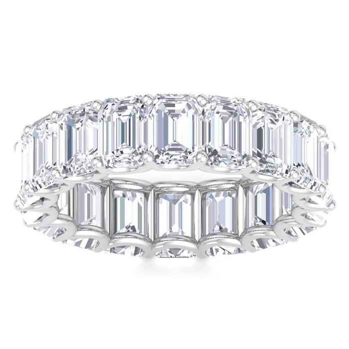 9 Carat Emerald Cut Lab Grown Diamond Eternity Ring In 14 Karat White Gold, Ring Size 7