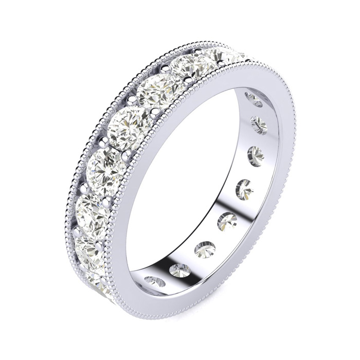 Eternity Ring Size 8 2 1/5 Carat Round Moissanite Milgrain Eternity Ring In Platinum