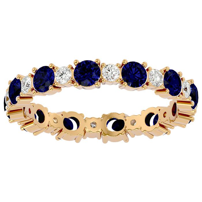 Eternity Ring Size 9 1 3/4 Carat Sapphire and Moissanite Eternity Ring In 14 Karat Yellow Gold