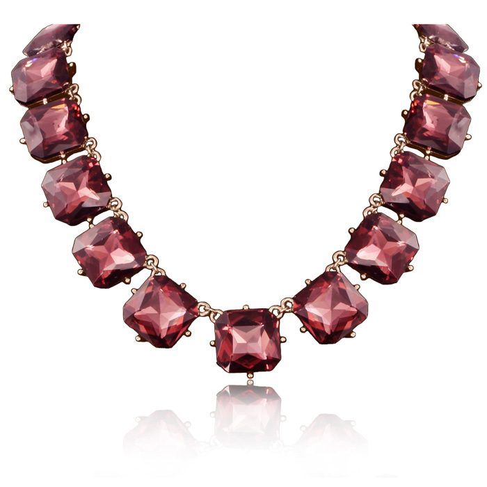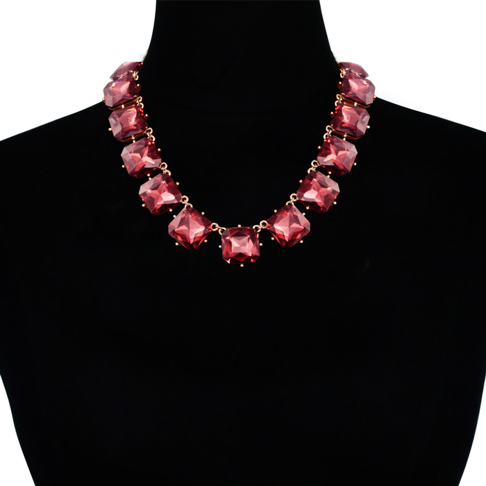 Fine Pink Crystal Cushion Strand Necklace, 18 Inches