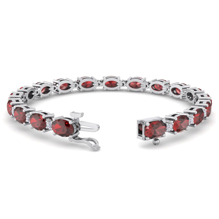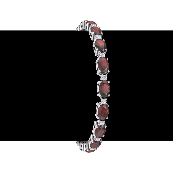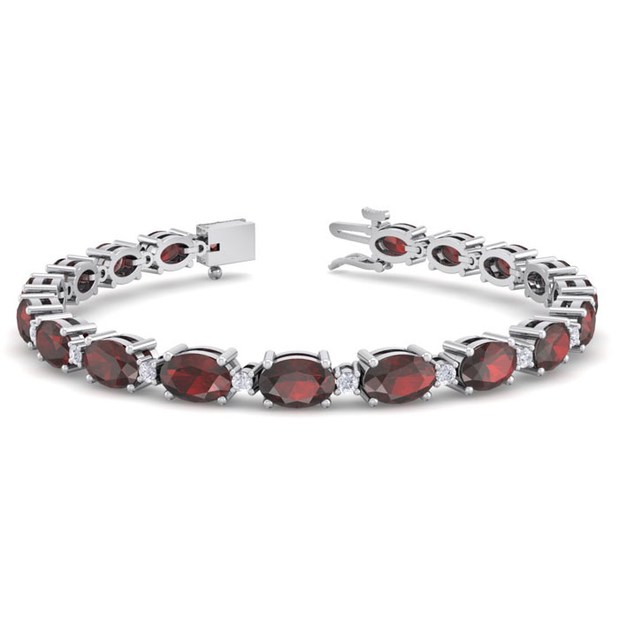 11 Carat Oval Shape Garnet and Diamond Bracelet In 14 Karat White Gold, 7 Inches
